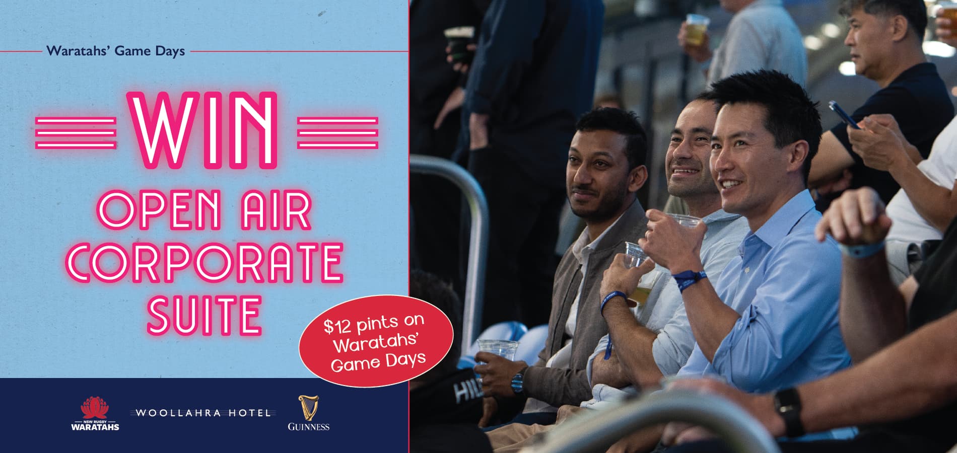 To celebrate our partnership with the NSW Waratahs, we’re giving you the chance to WIN an Open Air Corporate Suite for 6 at the Waratahs v Brumbies on 22 May, valued at over $2,500.